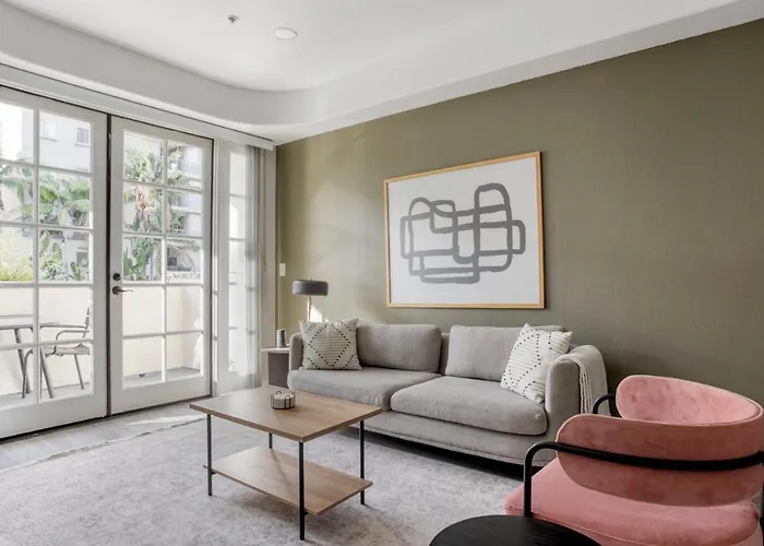 Eine komplette Küche ist ebenfalls vorhanden, ebenso wie eine Mikrowelle und Küchenutensilien. Für einen bequemen und entspannenden Aufenthalt in dieser Unterkunft stehen den Gästen Ausstattung zur Kaffee- & Teezubereitung zur Verfügung. Das Restaurant Au Fudge liegt in 650 Metern von diesem Apartment entfernt und bietet amerikanische Gerichte an. Das Apartment ist gleich neben der Bushaltestelle Santa Monica & Doheny.